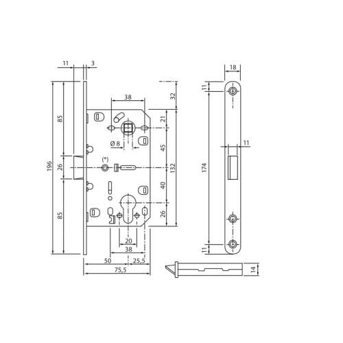 Механізм SIBA PZ для міжкімнатних двері з безшумною клямкою SB8550 виконаний під & nbsp; стандарт ручки - 85 мм, видалення ручки - 50 мм.