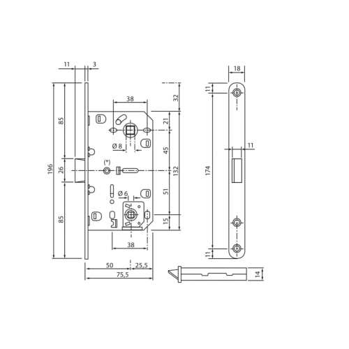 Механізм SIBA WC для міжкімнатних двері з безшумною клямкою SB9650 виконаний під стандарт ручки - 96мм, віддаленість ручки - 50мм.