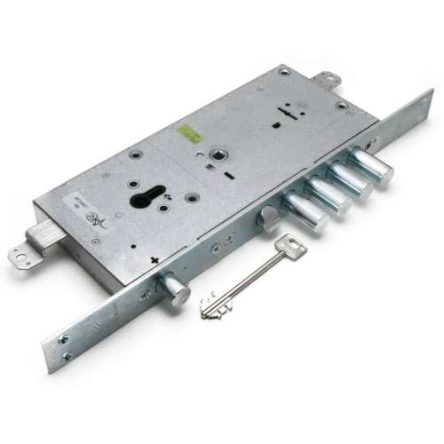 Циліндровому-сувальдний механічний 2-х системний замок CISA 57986 встановлюється на зовнішні сталеві двері. Обидва механічних пристрої (сувальдний і Ціліндровій) працюють незалежно один від одного.