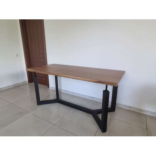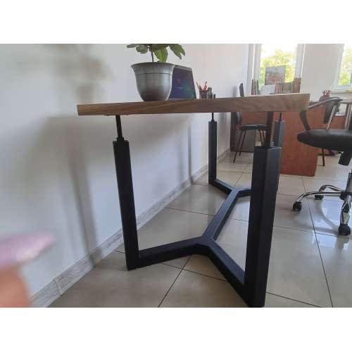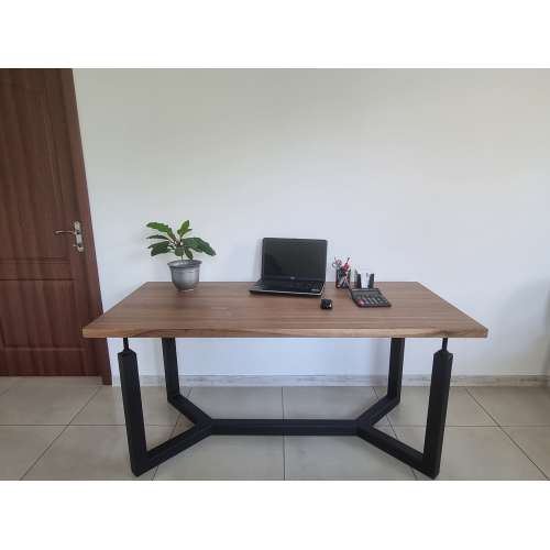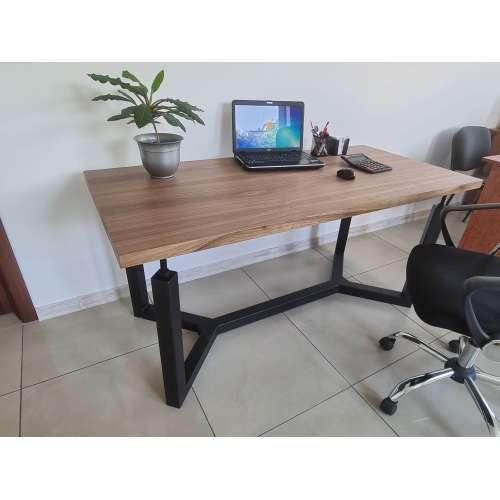 | Стільниця матеріал: фанера шпонована горіхом покрита масло-воском Розмір стільниці: 1500х800х33 Ніжки: металева труба 60х60х3. Висота ніжок регулюється. Покриття металу: зносостійке порошкове покриття чорний колір (під замовлення можливо пофарбувати по рал) |