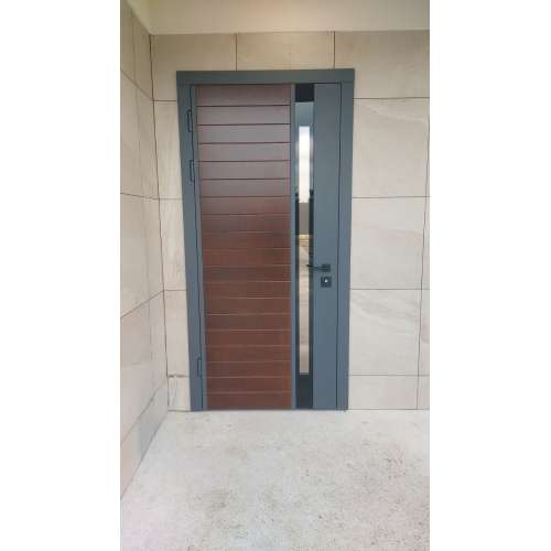 НАШІ РОБОТИ Вхідні двері металеві в будинок. Накладки из тонованої вологостійкої фанери