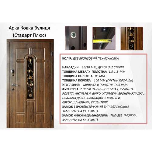Фурнітура*2 зовнішні петлі на прихованих підшипниках, вічко, ручка на розетці, утоплена броненакладка, євроущільнювач, посилення в рамі