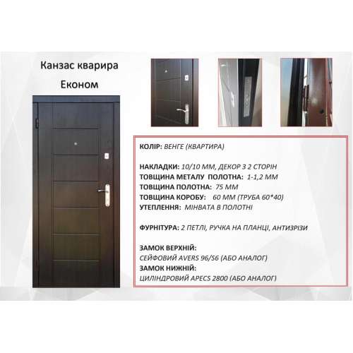 Фурнітура* 2 зовнішні петлі, вічко, ручка на планці, євроущільнювач