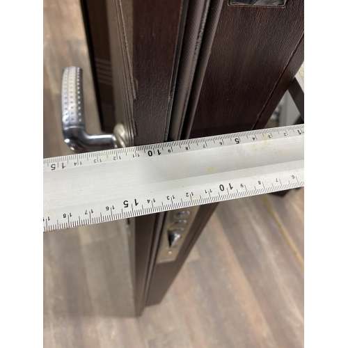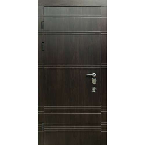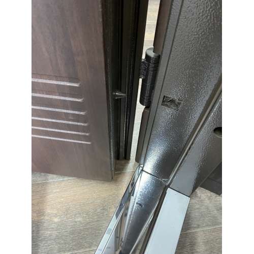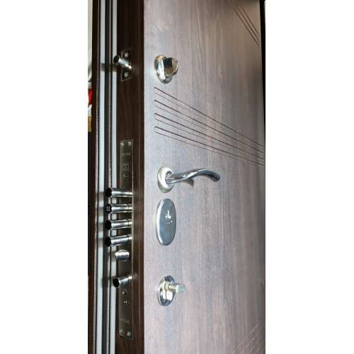 | Фурнітура* | 3 зовнішні петлі, ручка на розетці, утоплена броненакладка, поріг з нерж.сталі, торець полотна зашитий МДФ, нічний засув |