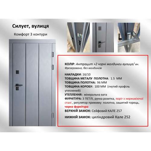 | Колір* | Антрацит вуличний + 2 AL молдинга / Антрацит вуличний (фрезування) | ||||||||