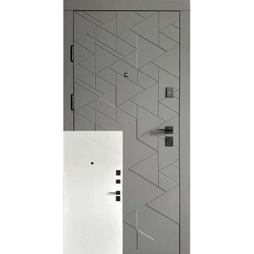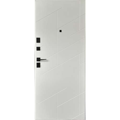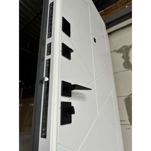 | Фурнітура* | 3 зовнішні петлі, ручка на розетці, антизрізи, поріг з нерж.сталі, ексцентрик, торець полотна зашитий МДФ, нічний засув, чорна фурнітура |